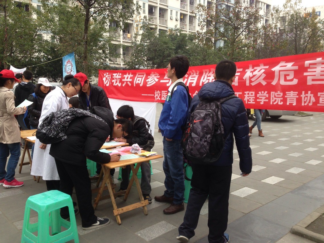 11月26日,在生命科学与工程学院青协会的协助下,校医院在犀浦校区开展了一场别开生面的结核病防治宣传活动。