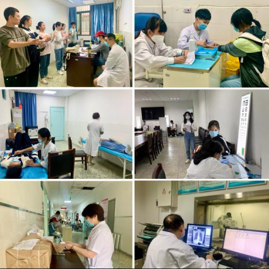 为确保在既定时间内新生入学体检各项措施落到实处,切实保障学生的身体健康,医幼及场馆服务中心充分利用暑期,通过制定详细的新生入学体检工作方案,安排参检的医护及保障人员,检修维护体检专用仪器设备,整治校医院周边的环境卫生等举措,全力做好新学期迎新、新生体检等服务保障工作。校医院在门诊入口处张贴了醒目的流程和体检项目安排,并在每一个体检点位粘贴了彩色标识,最大程度的方便新生快速找到体检点位,顺利完成入学体检。同时,体检期间还招募了一批校内志愿者协助校医院承担体检流程引导、秩序维护、健康手册、宣传资料发放等任务。