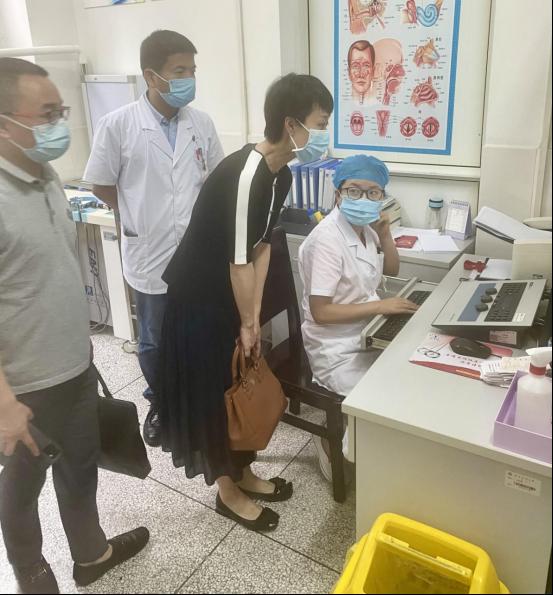 座谈会后,校医院一行深入口腔科、康复理疗科、放射科、视光中心等科室,就设施设备使用、业务项目开展等进行了沟通交流。
