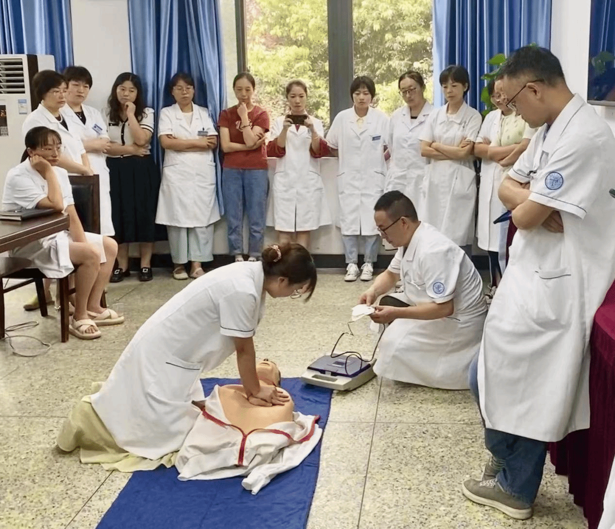 健康管理中心杨蓉、内科陈霜分别就健康管理中心、内科工作情况进行了总结与分享。会后,按照“三基三严”培训工作安排,校医院组织开展了心肺复苏+AED培训及考核工作。