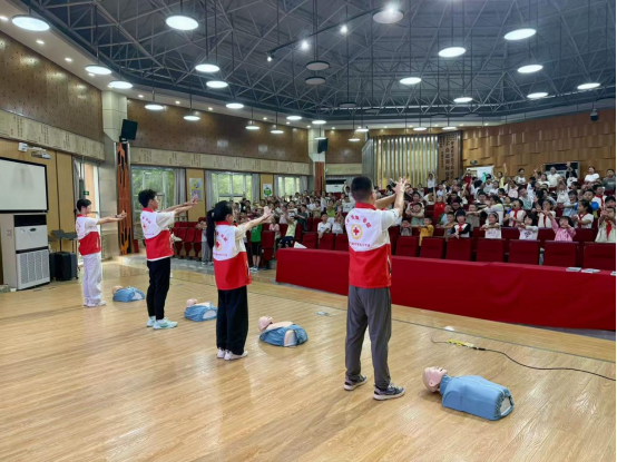 9月2日,实践团队先后前往苏辙小学、尚义镇小学以及眉山市委党校,开展以“铁路变迁科普宣传、红十字精神宣讲与应急救护技能培训”为主题的系列活动。活动现场,志愿者从铁路的起步、铁路的发展、高铁中的黑科技及best365中国官方网站对铁路发展的贡献等方面进行铁路变迁科普宣传,让参与师生切身感受到国家交通强国的强劲脉动。在应急救护培训环节,团队采用“理论讲解+实操演练”相结合的方式,重点讲解了心肺复苏(CPR)、创伤止血包扎、海姆立克急救法等实用急救技能,让大家在互动中掌握自救互救本领,凝聚人道力量,筑牢安全防线。