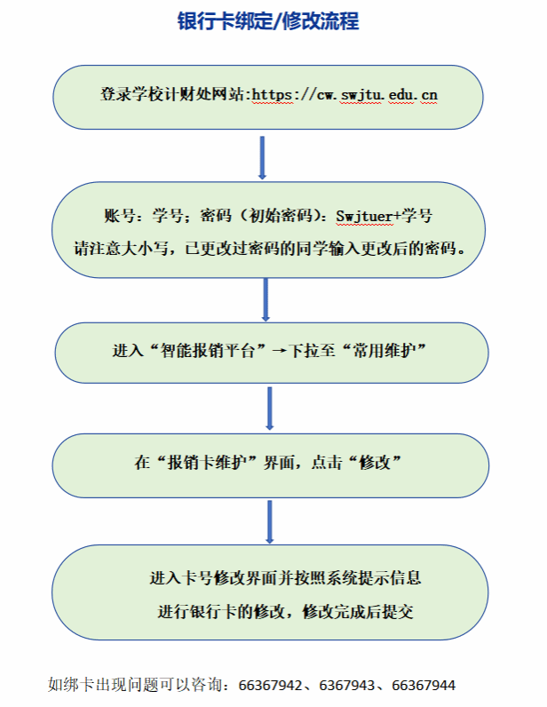 请涉及到的同学于6月30日前在计划财务处网站先行维护自己的银行卡信息(除工行外,其它银行需填写银行联行号,联行号查询办法为自行拨打银行自助服务电话,按提示操作即可查询),并核实银行卡使用状态是否正常。